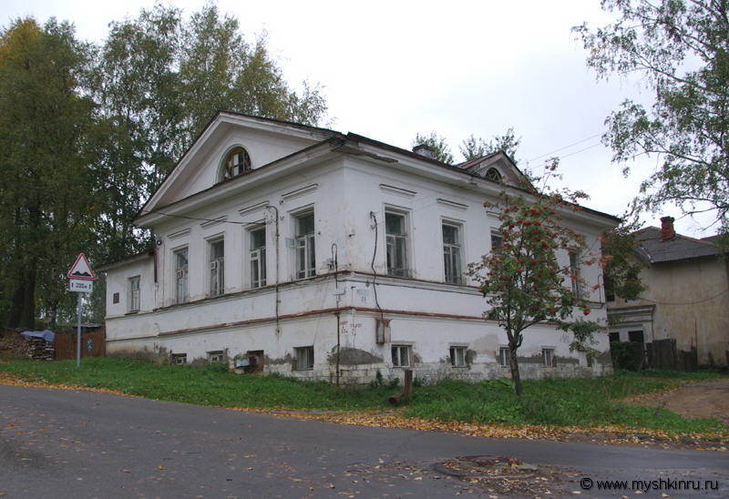 Мышкин. Дом Литвиновых Монументальный и основательный каменный одноэтажный особняк с полуподвалом принадлежал купцам Литвиновым. Здание построено в середине XIX века и очень удачно использует неровный рельеф участка, на котором оно расположено. Интересно, что в конце XIXв. Литвинову принадлежали два из двенадцати имевшихся в городе телефонных номеров. Любитель технологических новинок, Литвинов, имел обыкновение звонить из своей лавки домой жене. В этом доме проживал А.А. Тютчев, когда его избрали предводителем дворянского собрания Мышкина.