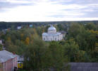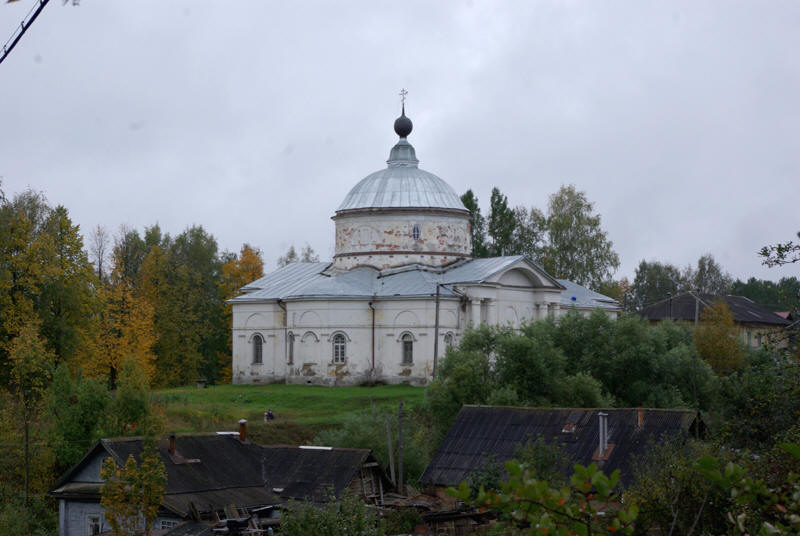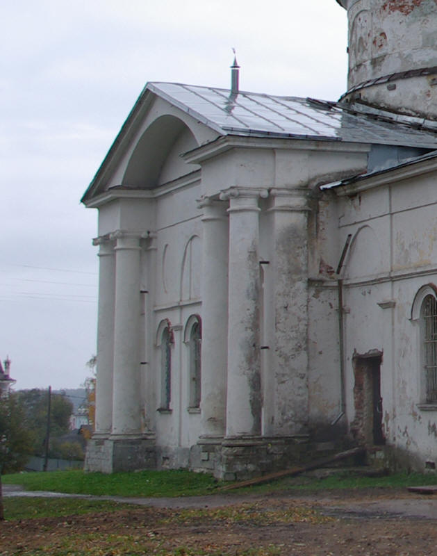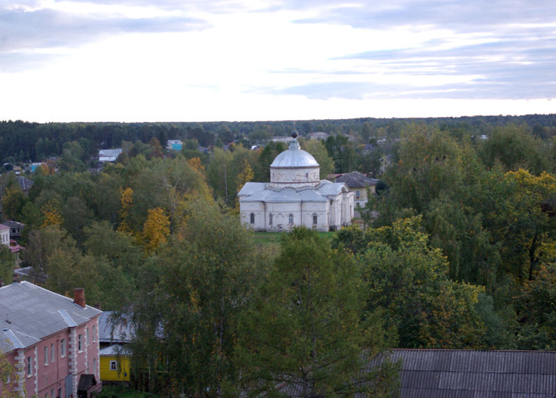 Мышкин. Никольский собор Собор Николая Чудотворца - самая старая каменная постройка Мышкина. Он старше самого города - Никольская церковь в селе Мышкино была построена в 1766 году, а статус города присвоен в 1777 году. С этого момента Никольская церковь стала городским собором. Интересна история постройки собора. Александр Петрович Березин, купец 1-ой гильдии, городской голова города Санкт-Петербурга, родился в семье крестьян в селе Еремейцево, неподалеку от Мышкина. Его отец был очень беден и был вынужден заложить в мышкинском трактире икону Святого Николая Чудотворца. Спустя более чем четверть века разбогатевший Александр смог выкупить образ обратно и считал чудом тот факт, что родовая икона никуда не пропала за это время. В память об этом Березин построил в Мышкине на свои средства церковь. Он всю жизнь активно занимался благотворительностью и построил в общей сложности три храма - кроме мышкинского еще были построены церковь Вознесения Господня в Круглицах (сейчас Охотино) рядом с Мышкиным и в Санкт-Петербурге. В 1830-е годы, после строительства нового Успенского собора, Никольский был сильно перестроен - на северной и южной сторонах появились портики с парными колоннами, изменился купол. В 1860-х гг. была полностью перестроена колокольня, уничтоженная в 1930-х годах. В советское время Никольский собор использовался под Дом культуры. В 2003 году он был возвращен верующим, а с 2004 г. ведутся службы. В подвале собора представлена музейная экспозиция "Тайны VIII века". В доме церковного причта напротив собора открыт Музей семейных коллекций, в котором можно познакомиться с историей храма. В соборе проведены значительные ремонтные и реставрационные работы. В сентябре 2010 года его посетил Святейший Патриарх Московский и всея Руси Кирилл в рамках поездки по городам Ярославской епархии, приуроченной к торжествам в честь 1000-летия Ярославля. Патриарх пожелал помощи Божией всем, кто принимает участие в восстановлении Никольского собора, и передал в дар храму икону святого преподобного Ионы Киевского.
