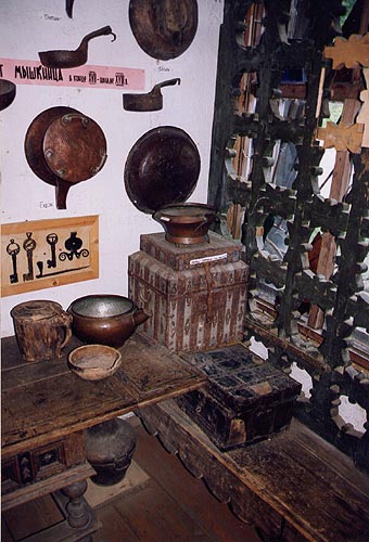 Музеи Мышкина. Музей столицы лоцманов (Краеведческий, историко-бытовой музей)Информация с сайта музея: Непременно посетите наш краеведческий музей. И о славном городе Мышкине вы узнаете ВСЁ. О знаменитом лоцманском промысле, прославившем Мышкарей по всей верхней Волге как лучших знатоков речных просторов, способных преодолеть любые песчаные отмели и самые сложные каменные гряды. О купцах и дворянах - благородных созидателях и жертвователях. О мышкинских неподражаемых гончарах и резчиках, крестьянах-живописцах. Вы прикоснетесь к прошлому, живущему в вещах, верных спутниках мышкарей в ХVII-ХХ веках. С вами будут вести безмолвную, но умную беседу: письменный стол Н.А.Некрасова, книги историка и библиофила Ф.К.Опочинина, предметы, помнящие непобедимого флотоводца Ф.Ф.Ушакова. И ещё многое-многое другое... Музей содержит уникальную коллекцию храмовой скульптуры и третью по величине в России коллекцию прялок.