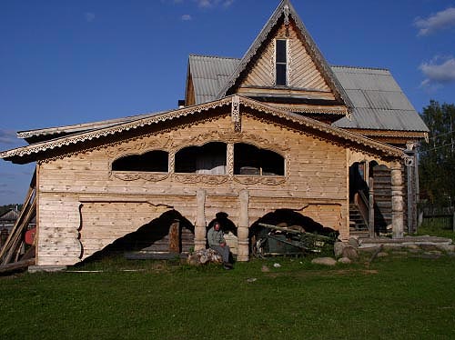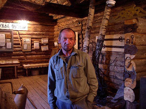 Музеи Мышкина. Музей Учемского края (музей "Веры и труда")Информация с сайта музея: Здесь, в селе Учма, где в Волгу впадает речка Учемка, в далёком средневековье монах Кассиан Грек, прибывший на Русь в свите Софьи Палеолог, будущей супруги Ивана III, под еще мирским именем Константин Макнувский (Мангупский) построил и обжил с монашеской братией великолепный монастырь – Кассианово-Учемскую пустынь, которая была взорвана в 1930-ые годы. В 1940-ые разрушенный монастырь ушел под воду, поднятую Рыбинским водохранилищем. Сейчас на этом месте небольшой остров и памятный крест, поставленный Учемским краеведом, лесником, великолепным плотником Василием Гурьевичем Смирновым. Им же был создан музей Учемского края, рассказывающий о старинном селе Учма и судьбоносных вехах в монастырской жизни Кассианово-Учемской пустыни. Кроме того, на территории музея представлены разнообразные постройки деревенских плотников, бережно восстановленные Василием Гурьевичем - здесь и банька, и амбар, и часовня. Есть и коллекция гигантских мельничных жерновов. А дом самого хозяина - просто сказочный терем, который с первого взгляда убеждает гостя в том, что он срублен настоящим «художником топора».